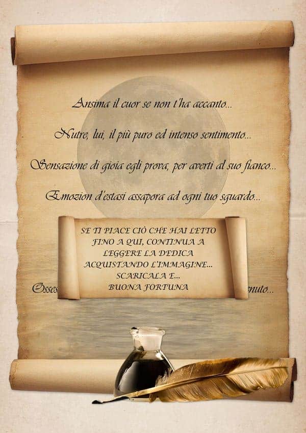 Vi consigliamo di stamparla su carta tipo pergamena, reperibile in quasi tutte le cartolerie. In questo modo darete valore alla vostra dedica.