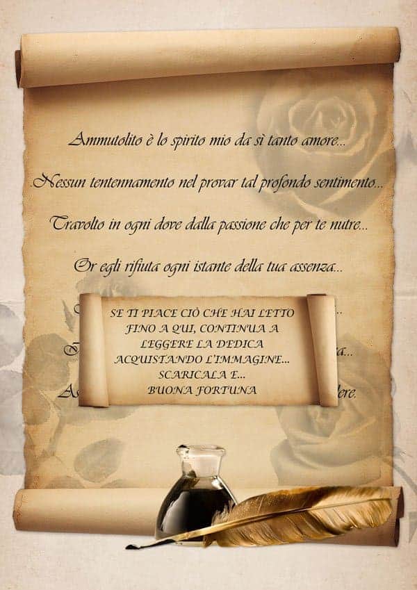 Vi consigliamo di stamparla su carta tipo pergamena, reperibile in quasi tutte le cartolerie. In questo modo darete valore alla vostra dedica.