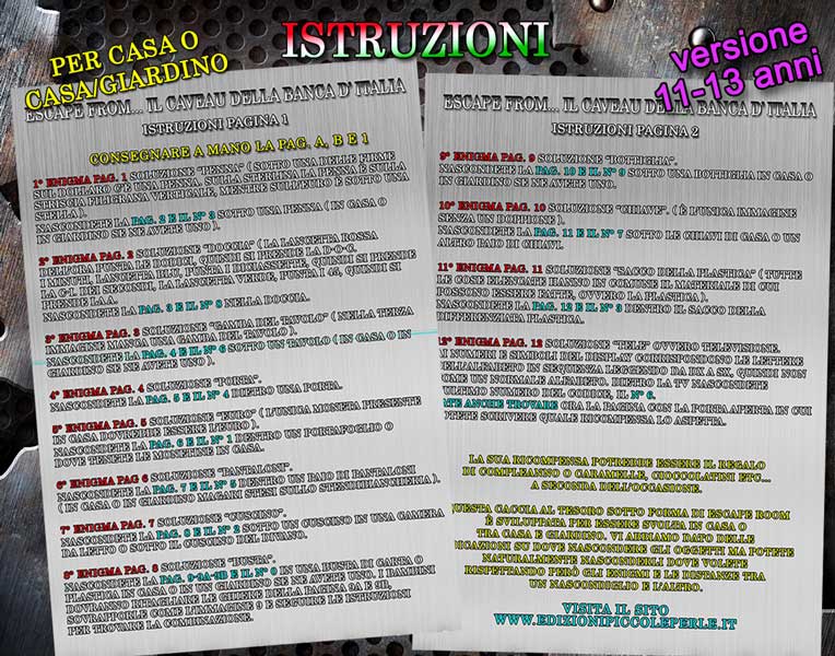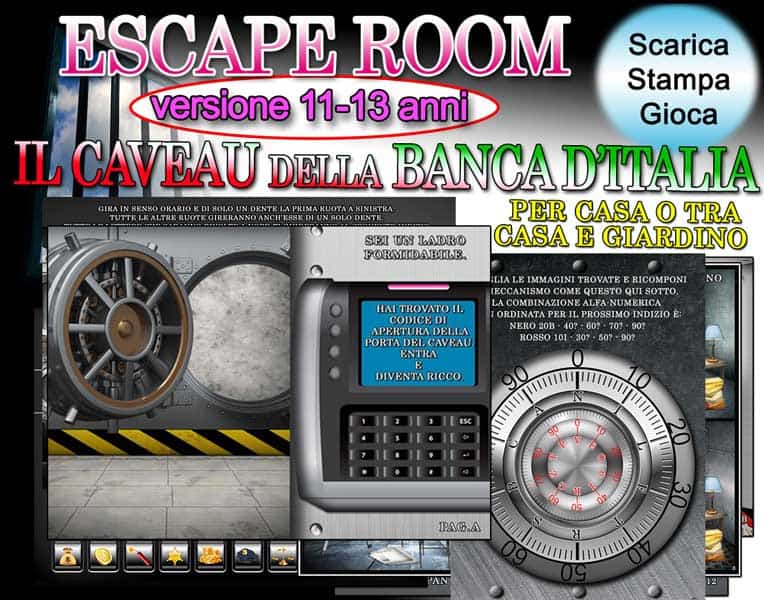 ESCAPE ROOM – Il Caveau della Banca d’Italia – 11-13 anni – per casa o casa e giardino