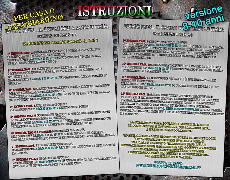 ESCAPE ROOM – Il Caveau della Banca d’Italia – 8-10 anni – per casa o casa e giardino