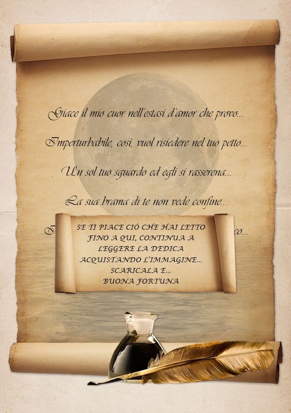 Vi consigliamo di stamparla su carta tipo pergamena, reperibile in quasi tutte le cartolerie. In questo modo darete valore alla vostra dedica.