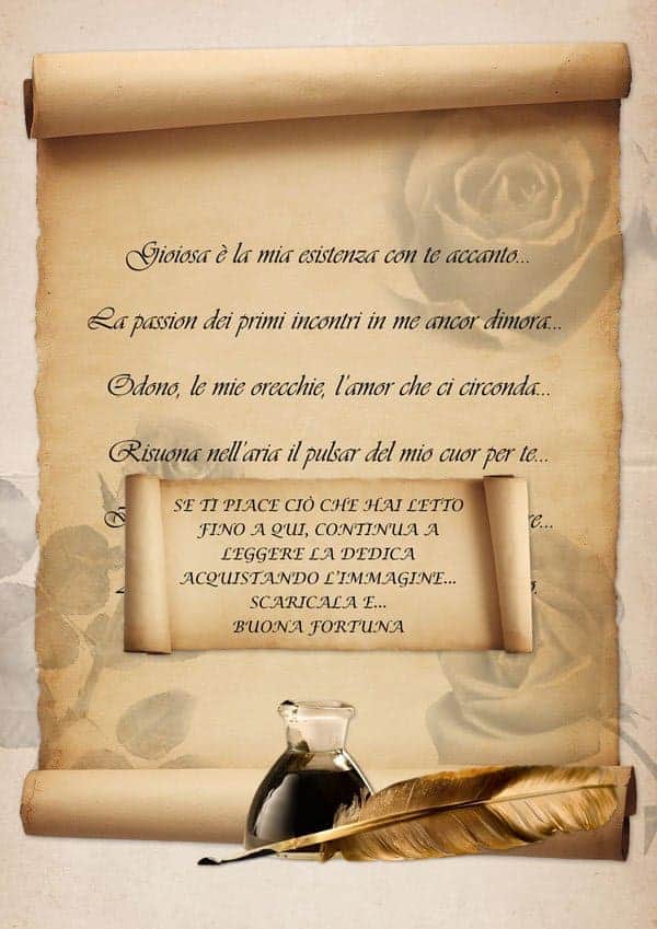 Vi consigliamo di stamparla su carta tipo pergamena, reperibile in quasi tutte le cartolerie. In questo modo darete valore alla vostra dedica.