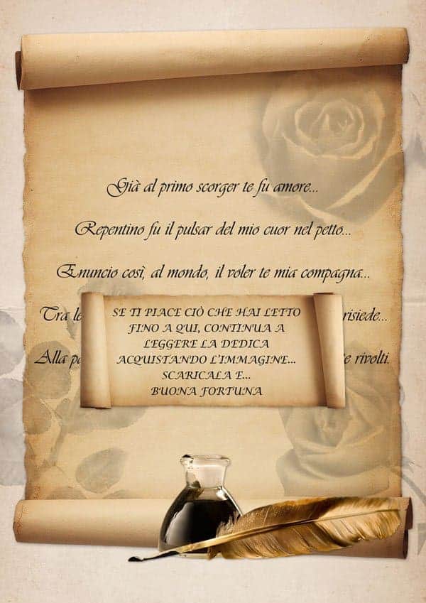 Vi consigliamo di stamparla su carta tipo pergamena, reperibile in quasi tutte le cartolerie. In questo modo darete valore alla vostra dedica.