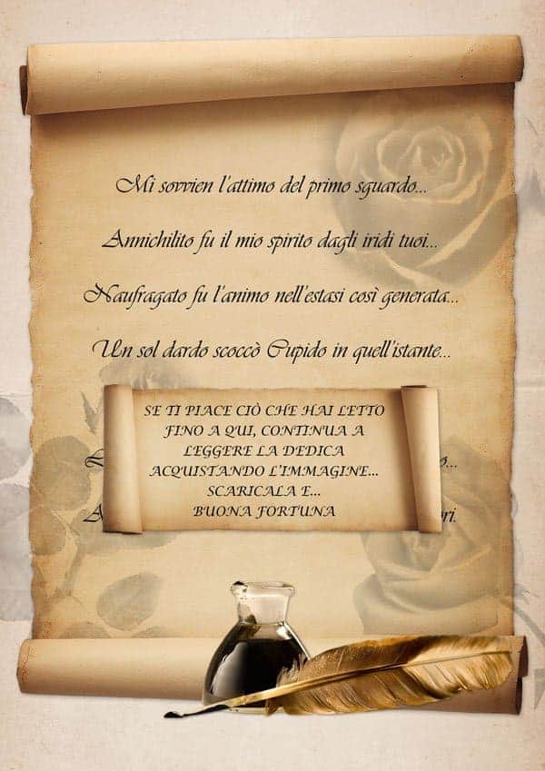 Vi consigliamo di stamparla su carta tipo pergamena, reperibile in quasi tutte le cartolerie. In questo modo darete valore alla vostra dedica.