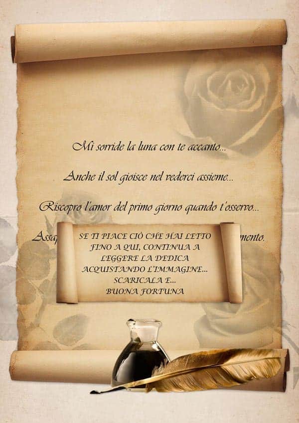 Vi consigliamo di stamparla su carta tipo pergamena, reperibile in quasi tutte le cartolerie. In questo modo darete valore alla vostra dedica.