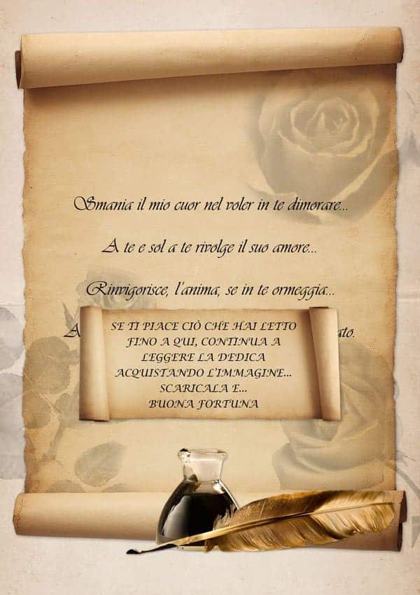 Vi consigliamo di stamparla su carta tipo pergamena, reperibile in quasi tutte le cartolerie. In questo modo darete valore alla vostra dedica.